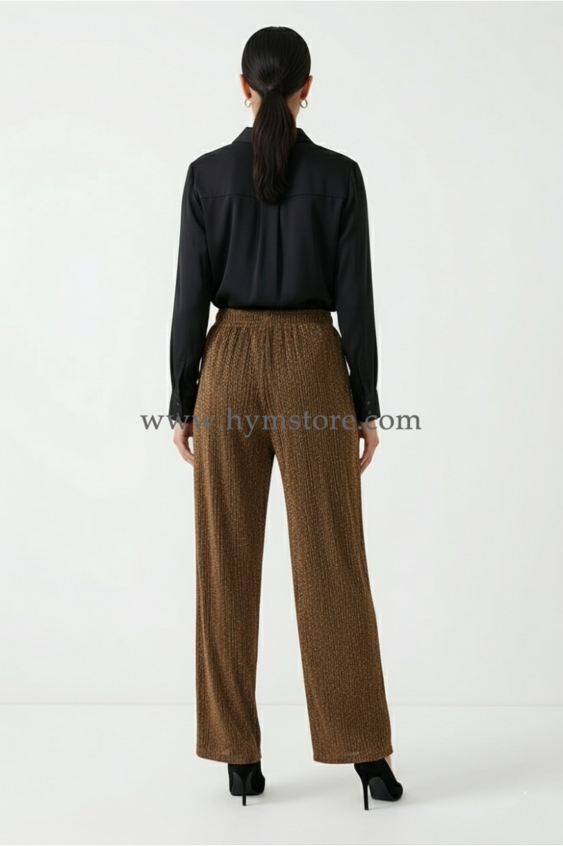 PANTALÓN PALAZZO DORADO OSCURO CON BRILLO