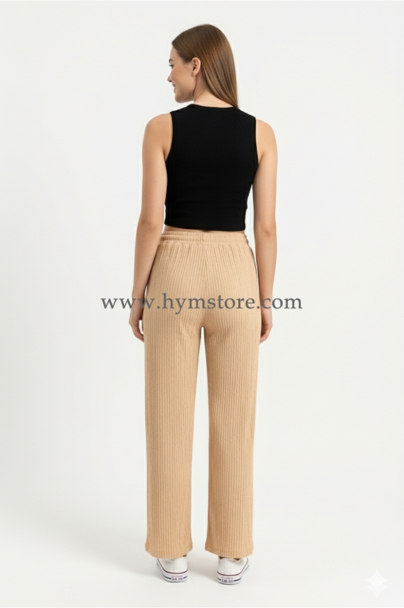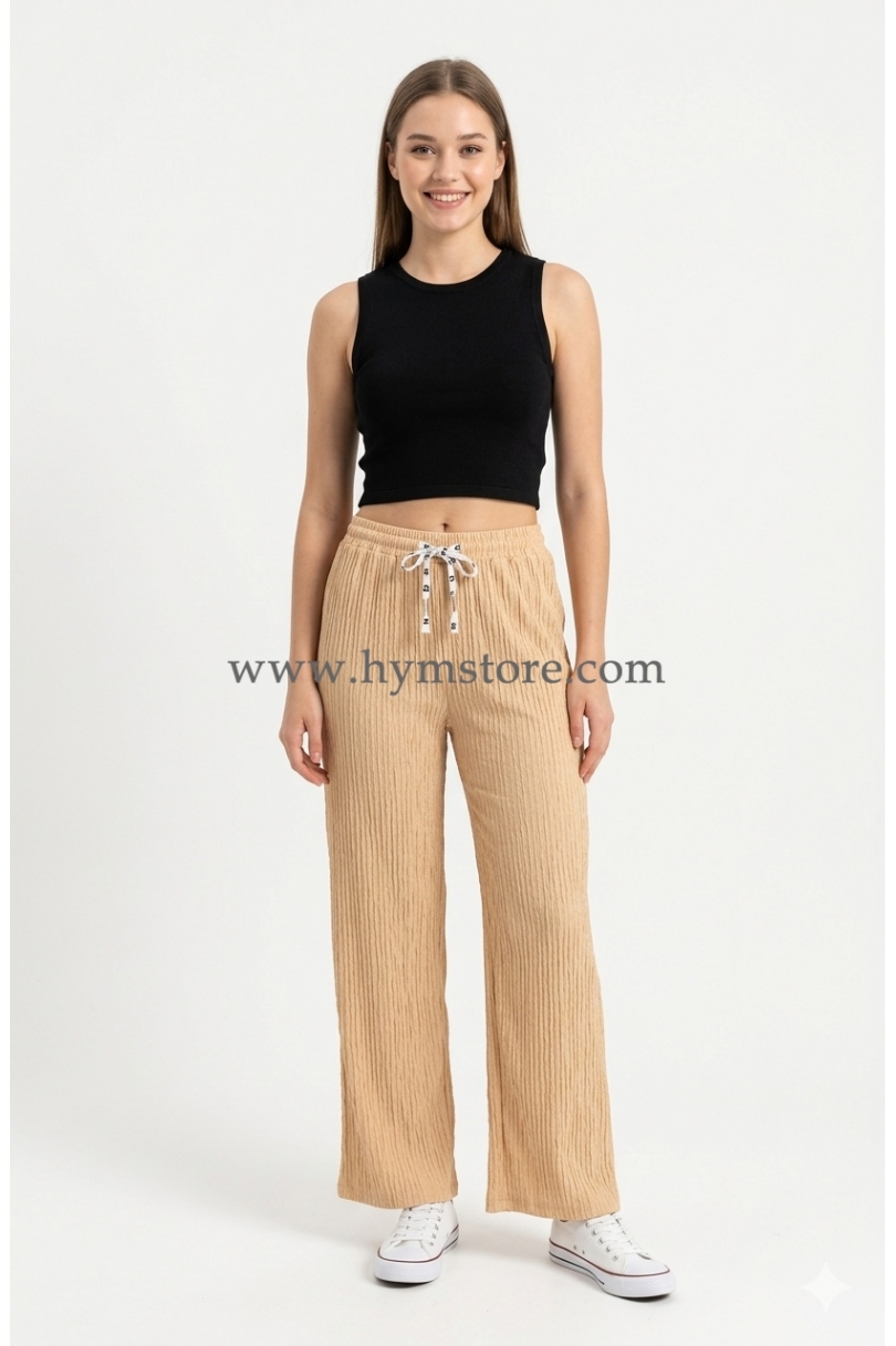 Pantalón de pierna ancha y cintura elastizada ajustable.